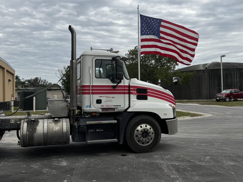 Picture 3: Credit RICK FISHER, for this picture of one of our semi trucks with the American flag flying proudly in the background, taken on site at a WWTP in Florida.